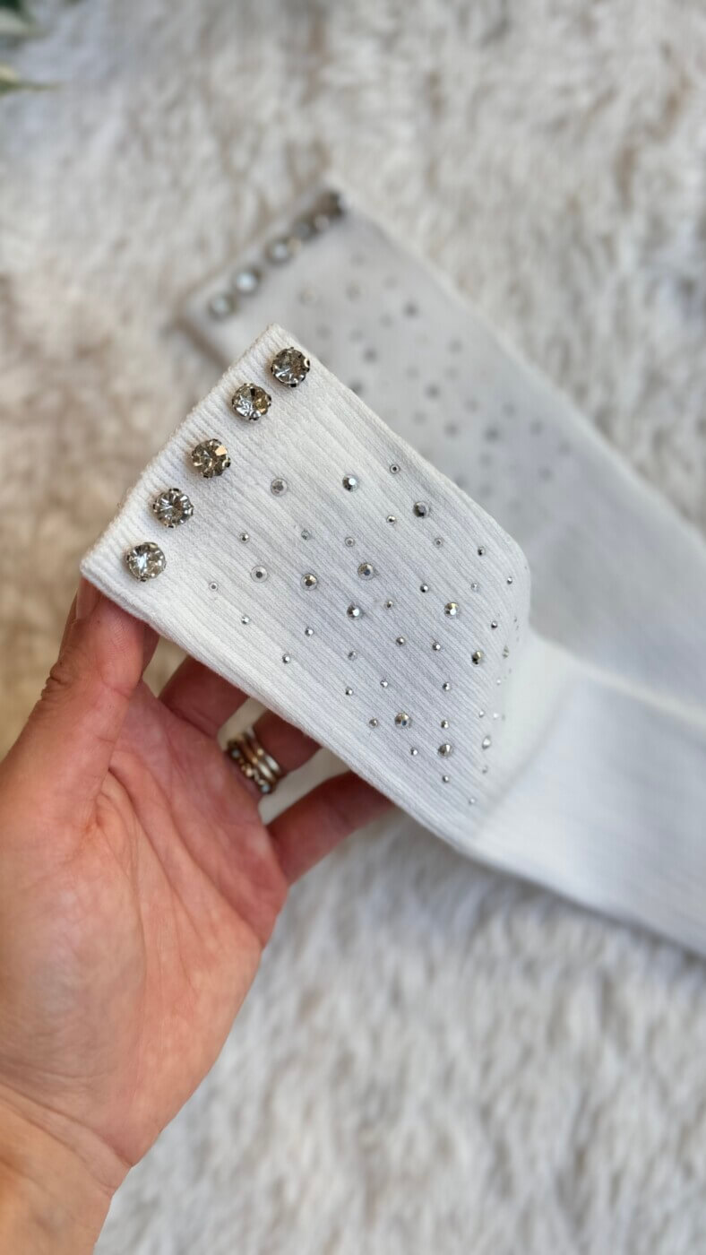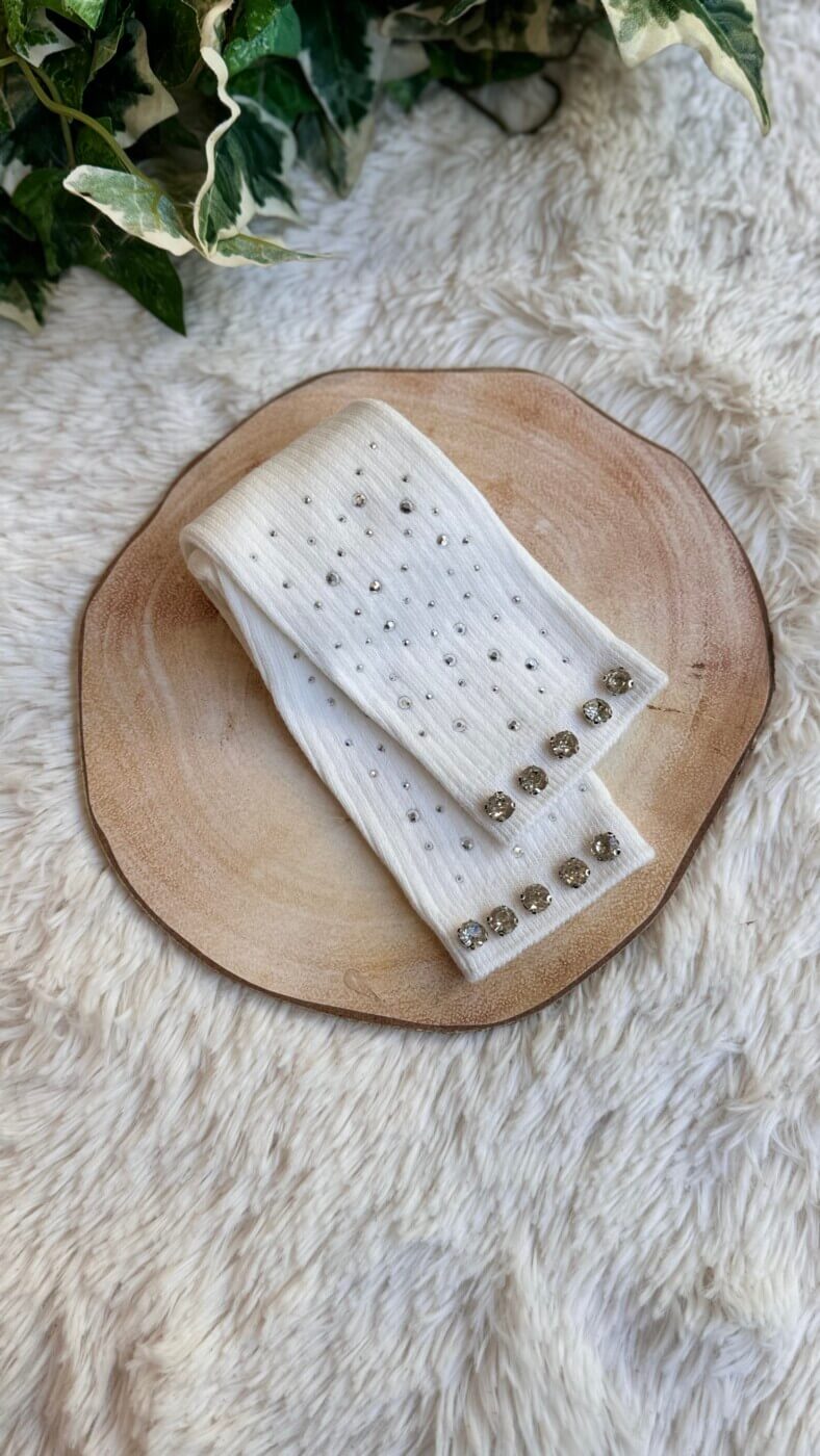 Λευκά rib καλτσάκια με εκτυφλωτικά στρας για να ολοκληρώσουν το look της με τον πιο εντυπωσιακό τρόπο.