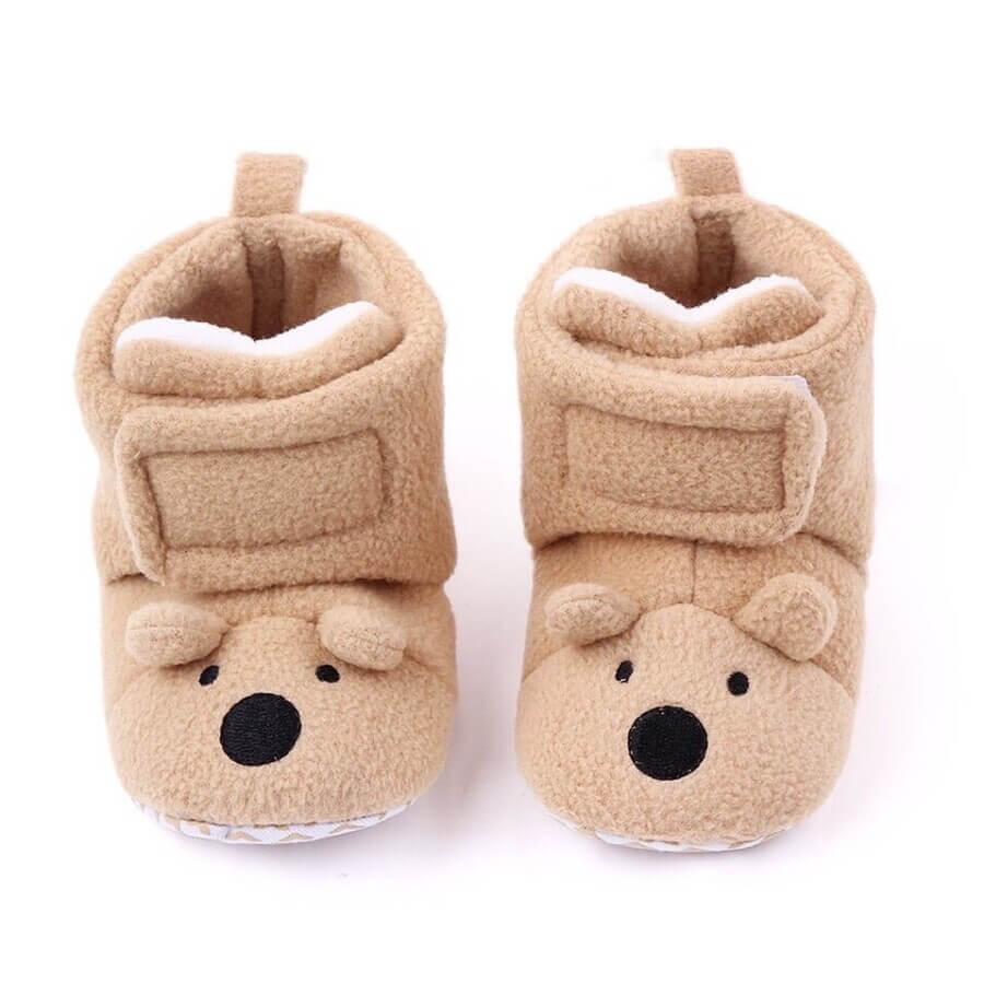 Χουχουλιάρικα μπεζ βρεφικά μποτάκια αρκουδάκι, με velcron στο πλάι.