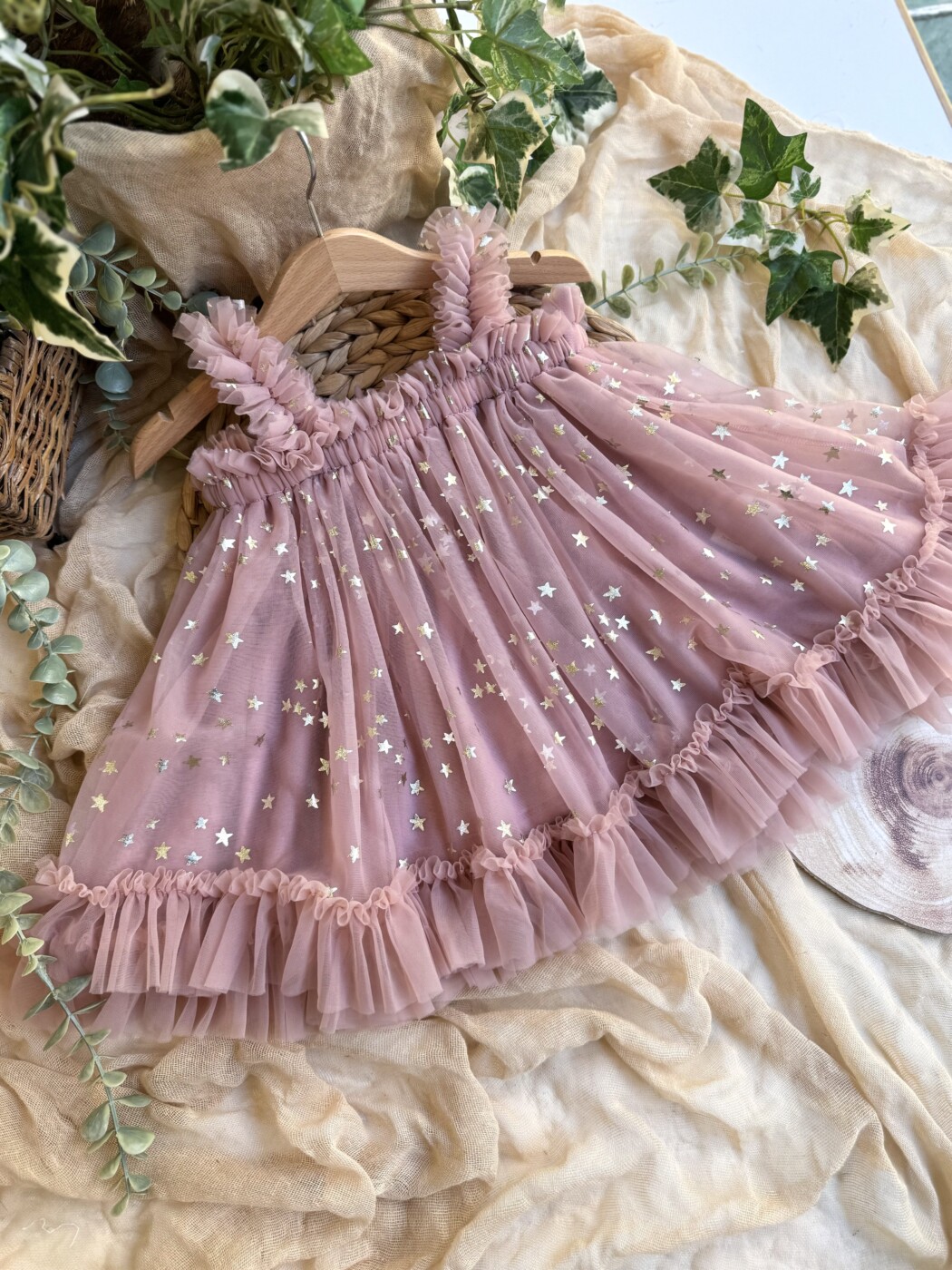 Αυτό το φόρεμα ήρθε για να τους μαγέψει όλους. Τα λόγια είναι περιττά μπροστά σε αυτό το κόσμημα. Το πλούσιο τούλι του, οι φραμπαλάδες στα μανικάκια, τα φωτεινά του αστέρια και οι πολύχρωμες φουντίτσες, θα μετακορφώσουν τη μικρή σας, σε ένα πραγματικό στολίδι. Προετοιμαστείτε για απόλυτο ενθουσιασμό στα ματάκια της, μόλις το αντικρίσει και αμέτρητες σβούρες!