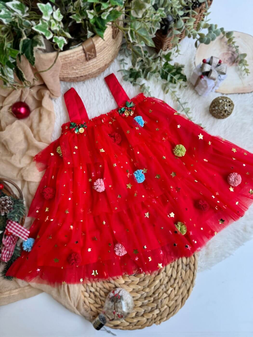 “Stellina” χριστουγεννιάτικο τούλινο φόρεμα με φουντίτσες