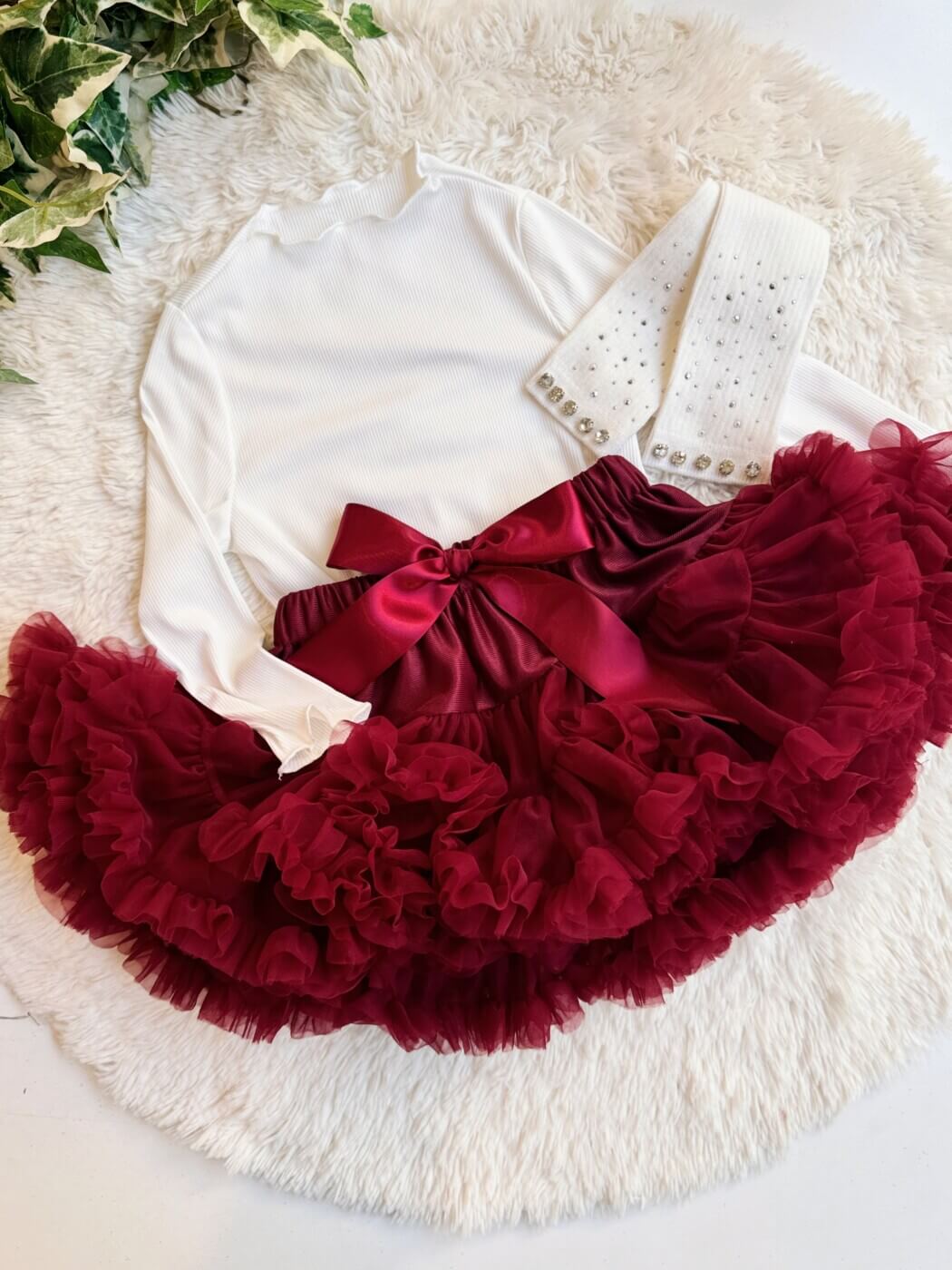 Μπορντώ καλτσάκια με φραμπαλά από οργάντζα